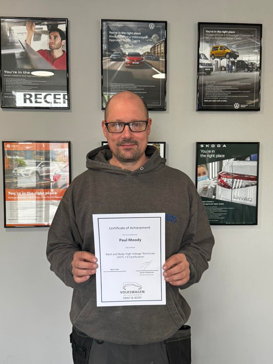 We would like to extend a huge well done to Paul for achieving his High Voltage Technician qualification with the Volkswagen Group.